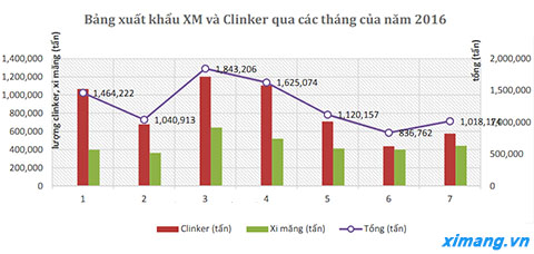 Từ đầu năm đến nay, tổng sản lượng tiêu thụ sản phẩm xi măng ở cả thị trường nội địa và xuất khẩu vẫn đạt gần 43 triệu tấn, bằng 107% so với lũy kế cùng kỳ năm 2015. Xuất khẩu xi măng giảm là do sản lượng dư thừa xi măng của Trung Quốc lớn, giá xuất khẩu lại quá thấp nên đã tạo ra sự cạnh tranh quyết liệt đối với sản phẩm xi măng xuất khẩu của Việt Nam. Vì vậy, các doanh nghiệp không mặn mà với xuất khẩu xi măng.